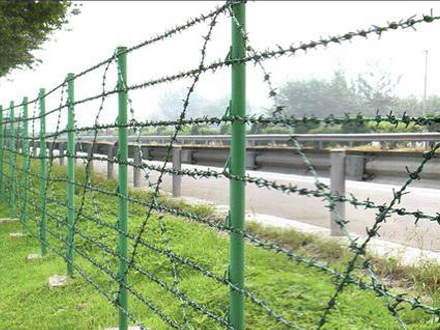 刺绳围栏网是一种新型的围栏网,主要有两种样式一种是俗称铁蒺藜、刺绳,另一种是刀片刺绳围栏网。
